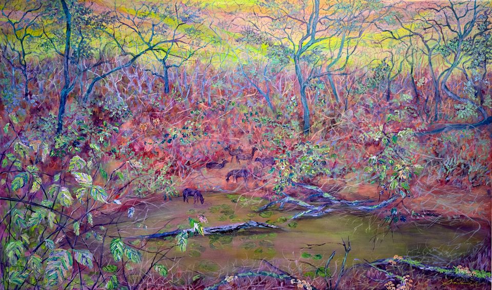 In Natuurlijk verbonden brengen kunstenaars Sravani Panchavati en Rebecca Engels de magie van de natuur tot leven met hun verfijnde en uiteenlopende technieken. Rebecca tekent met kleurpotlood en pastelkrijt hyperrealistische portretten van vogels, insecten en planten. Sravani schildert met acrylverf dromerige, impressionistische bossferen waarin mens en natuur samensmelten.