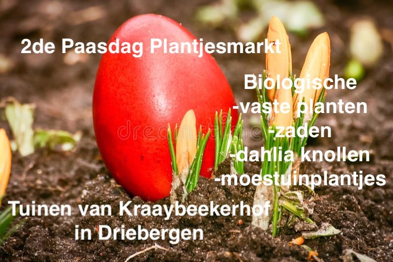 De tweede biologische plantjesmarkt van het seizoen. Op deze dag ben je weer van harte welkom in de prachtige tuinen van Kraaybeekerhof. Je kunt bij ons terecht voor je bio planten en zaden voor je eigen (moes)tuin. Moestuinplantjes, dahliaknollen, vaste planten, bloemenzaden, groentezaden en nog veel meer. Deze 2e paasdag organiseren we ook een aantal extra activiteiten. Zo gaan we stipt om 14.00 paaseieren zoeken met de kinderen en kun je weer shingels (houten dakpannen) kopen, versieren. deze zullen vereeuwigd zullen worden op het nieuwe gebouw Uiteraard is ook de theetuin open voor koffie, thee, sap, taart, soep en ander lekkers.