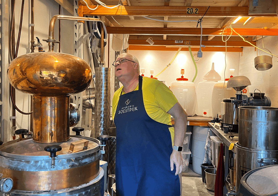 Bij Stokerij Soestdijk begint het verhaal met de Soester knollen: het gele boterknolletje dat vroeger in de streek werd geteeld en waar de Soesters hun bijnaam aan danken. Vanuit dit lokale ingrediënt groeide een stokerij vol ambacht en experiment. Van jenever tot specials met vuurdoorn of pompoen - hier proef je de creativiteit van drie stokers én het landschap van Soest in het glas.