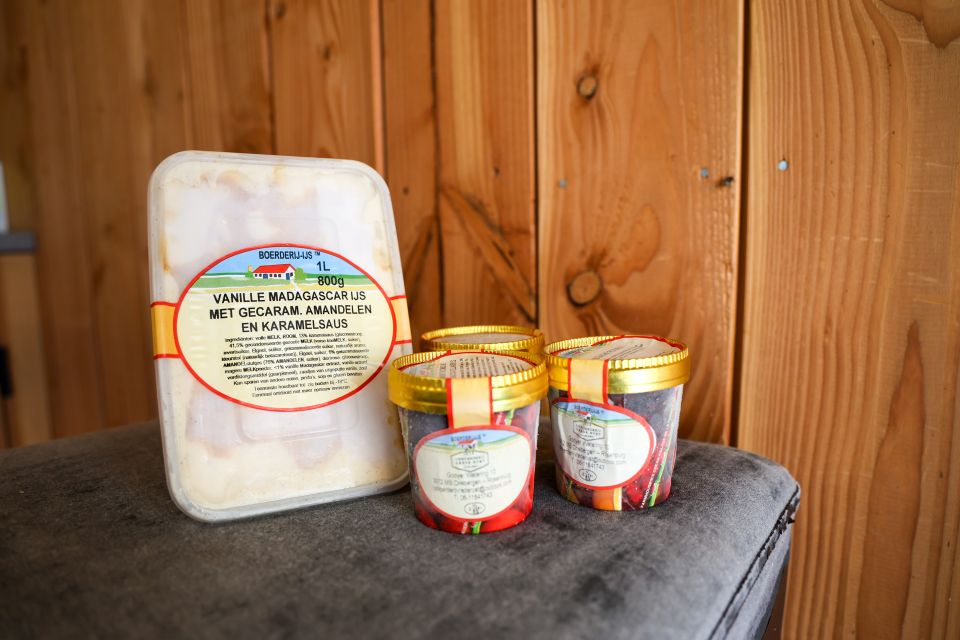 IJs, ijs, en nog meer ijs! Bij IJsboerderij Vrederust geniet je van vers gemaakt ijs, ijsgebak, en ijstaarten. Bereid met melk van eigen koeien, die op de wei smullen van gras vol klavers en kruiden. Kom vooral eens de vanille-ijs met amandelen en karamelsaus proeven, populair voor een reden!