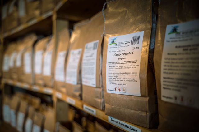 De winkel in de molen is een geliefde plek voor inwoners en bezoekers die op zoek zijn naar iets echts en puurs. Hier staan de zakken volkorenmeel, broodmixen, pannenkoekenmix, honing en roggebrood – allemaal met het vertrouwde Windhond-logo. Wie binnenloopt, proeft niet alleen eerlijk ambachtelijk meel, maar ook de trots van de vrijwilligers die de molen draaiende houden.
