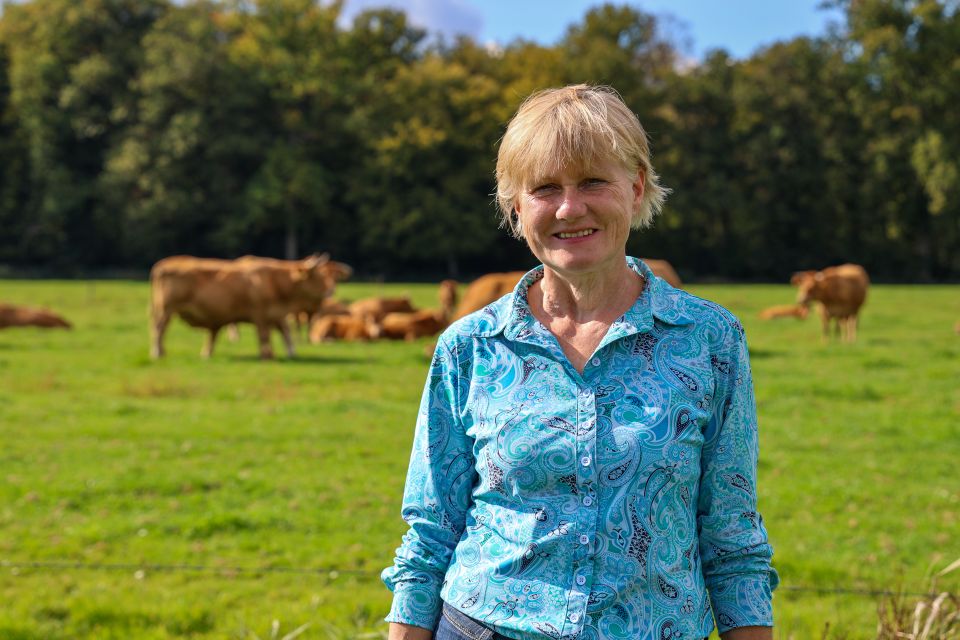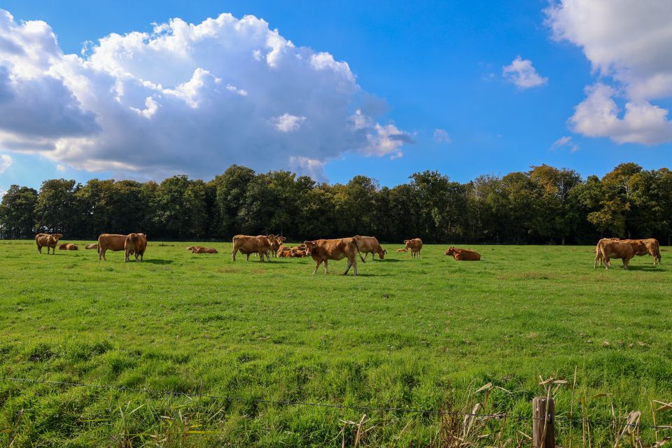 We houden er Limousins, een sterk ras koeien, die zich thuis voelen op extensief beheerd grasland, waar geen kunstmest op gebracht wordt. Onze koeien en stieren behouden hun horens, waardoor er een natuurlijke rangorde is in de kudde. Deze kudde bestaat uit een stoere stier, de koeien en hun kalfjes die de eerste 8 maanden veilig bij de moeder blijven, daarna komen ze in een groep met leeftijdsgenoten.