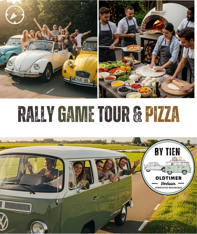 Oldtimer tour door de Utrechtse heuvelrug speel onderweg leuke opdrachten en navigeer slim de kortste route totale duur game tour is ongeveer 3 uur pizza workshop met onbeperkt pizza's, salade en fruitige drankjes ( 2 uur)